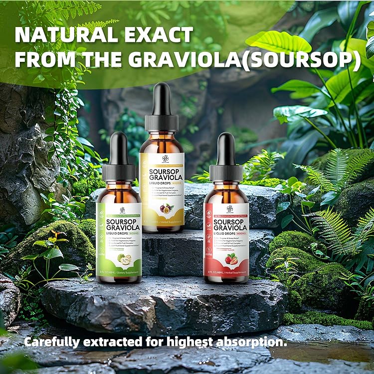 Premium Soursop Graviola for Digestion, Support Healthy Skin & Sleep, Soursop Extract Liquid Drop from Graviola Leaf and Fruit, Sugar/Caffeine/Gluten Free, Passion Fruit Flavor, 2 Fl Oz