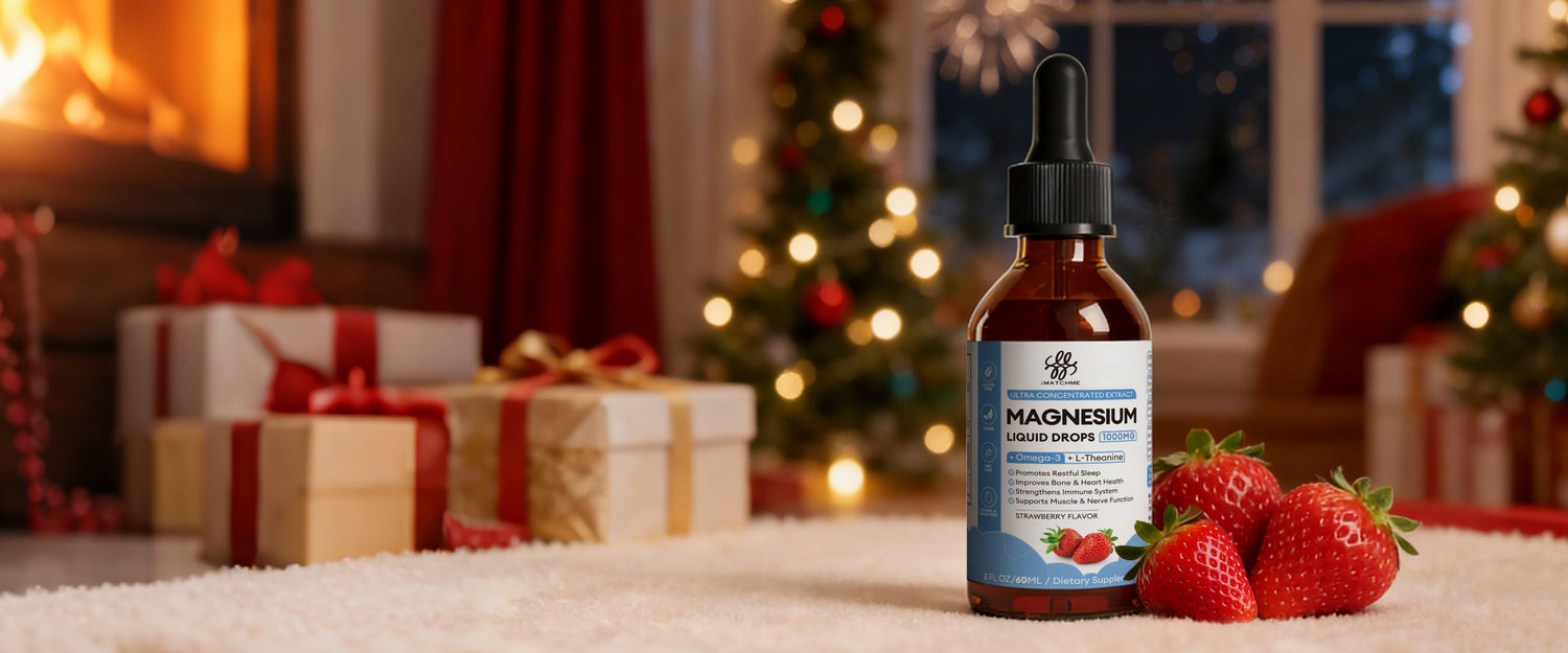 Magnesium Glycinate Liquid Drop with Citrate, Oxide and Taurate, Calm Magnesium with Omega3, L-Theanine, D3, B6, B12 for Calm, Sleep, Leg Cramps, Muscles, Energy, Sugar-Free Strawberry Flavor, 2 Fl Oz