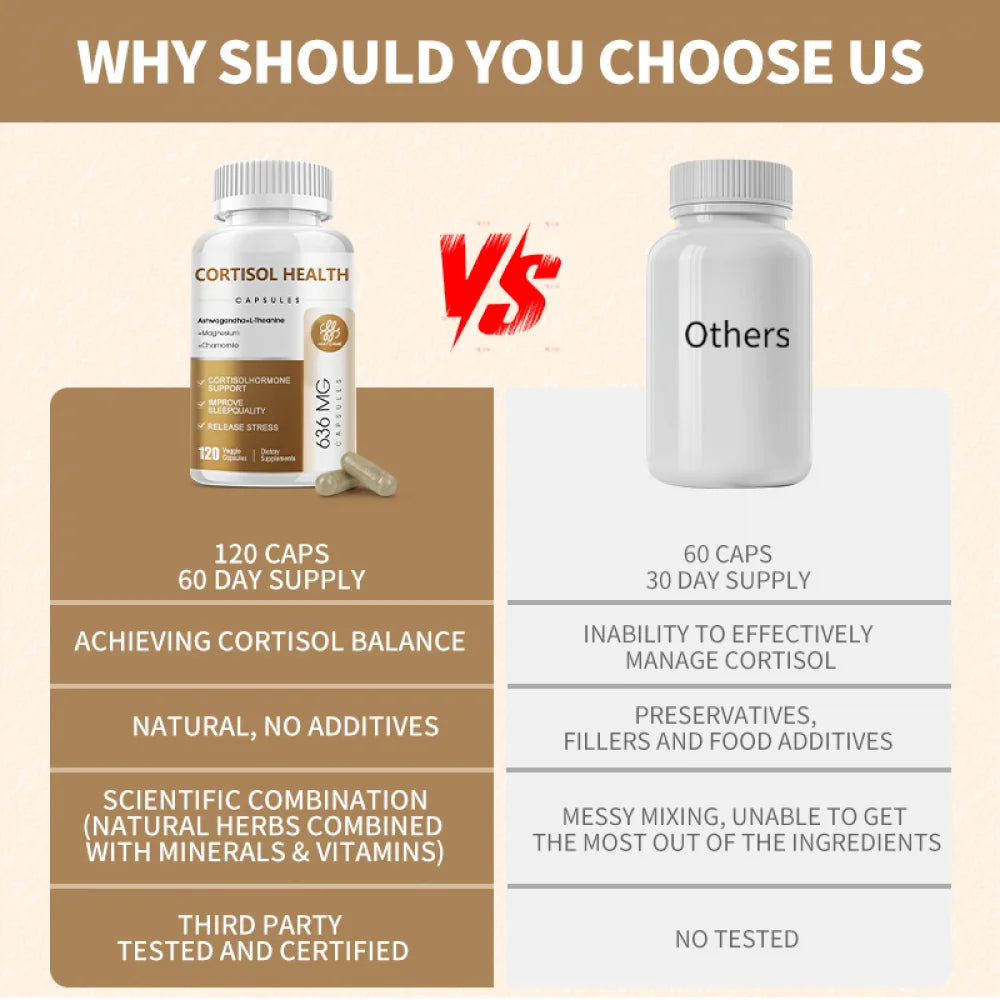 Superior Quality: This is a cortisol capsule made entirely of natural ingredients. It is vegan, non-GMO, and free from gluten, soy, nuts, dairy products, sugar and fillers. Each bottle contains 120 capsules.